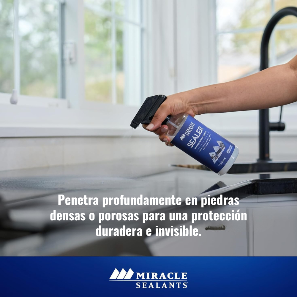 El sellador para cubiertas de cocina Miracle Sealants® es un sellador de calidad profesional que ayuda a proteger encimeras y superficies de piedra contra daños por agua y manchas de aceites, alimentos, bebidas y más. Ideal para proteger y mantener encimeras de piedra natural y artificial, como granito, mármol, cuarzo, cuarcita, travertino, azulejos y más.